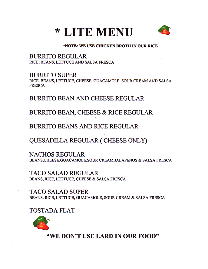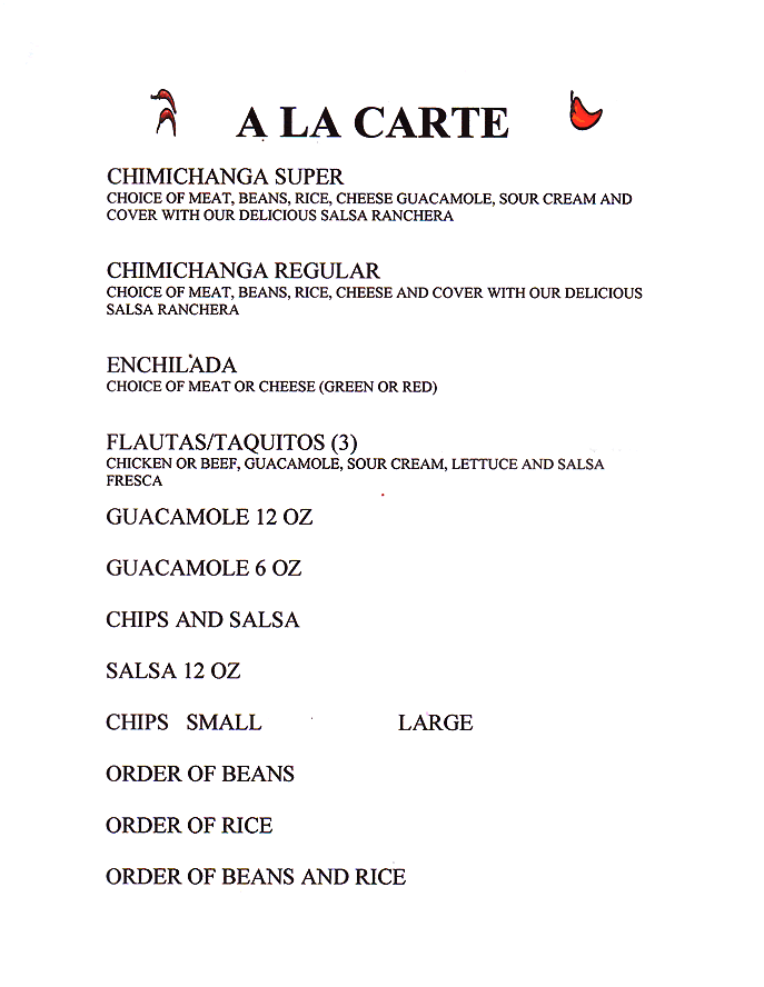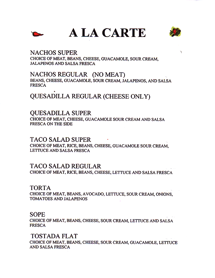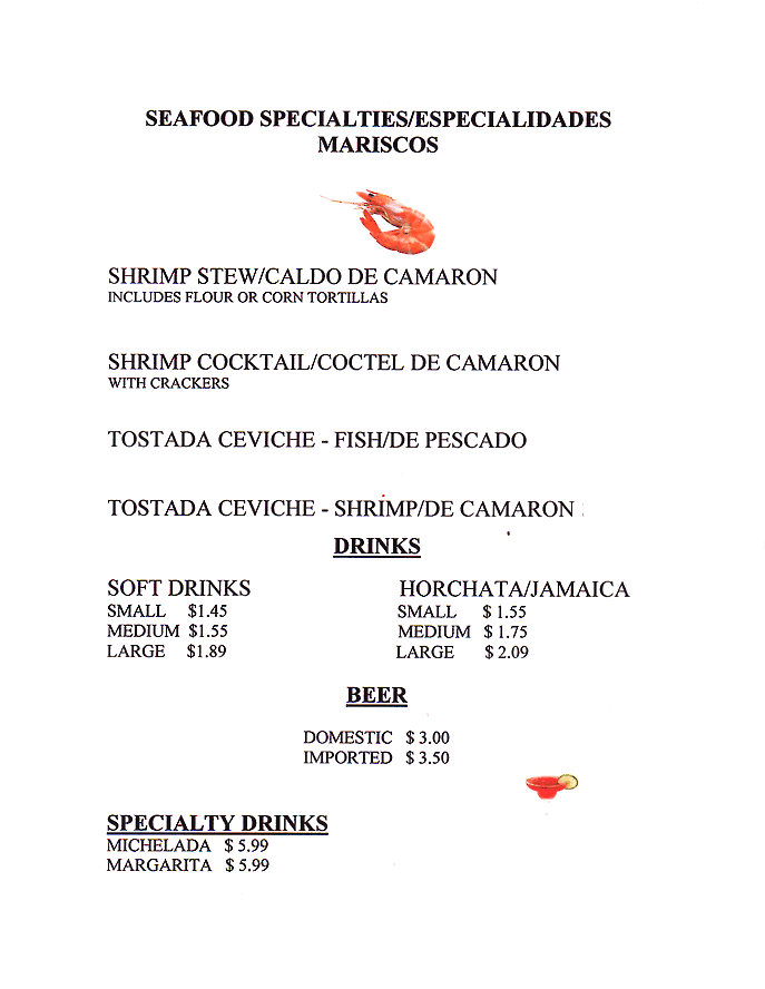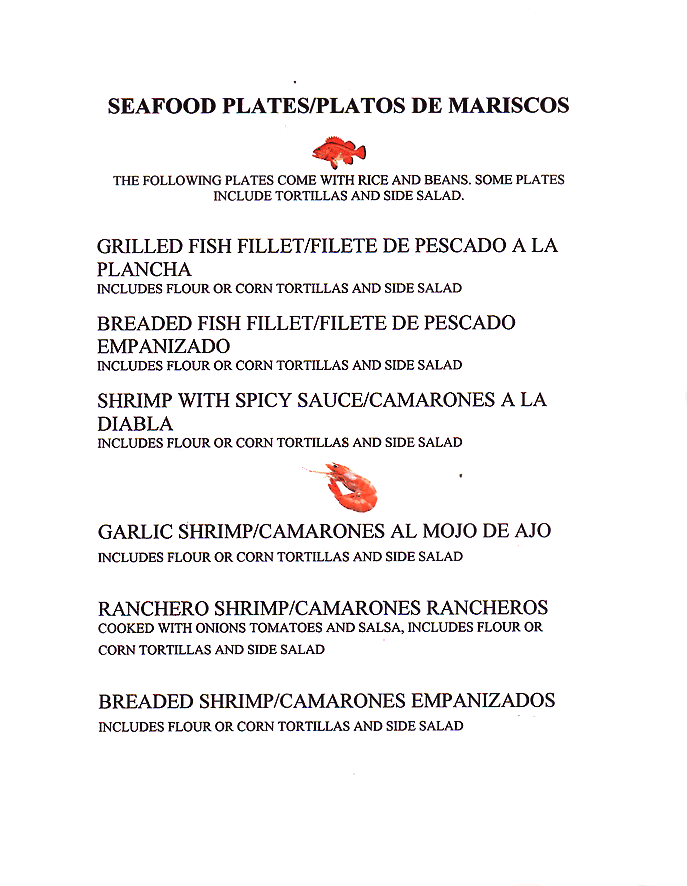 Seafood / Kids Menu / Lite Menu / A La Carte
